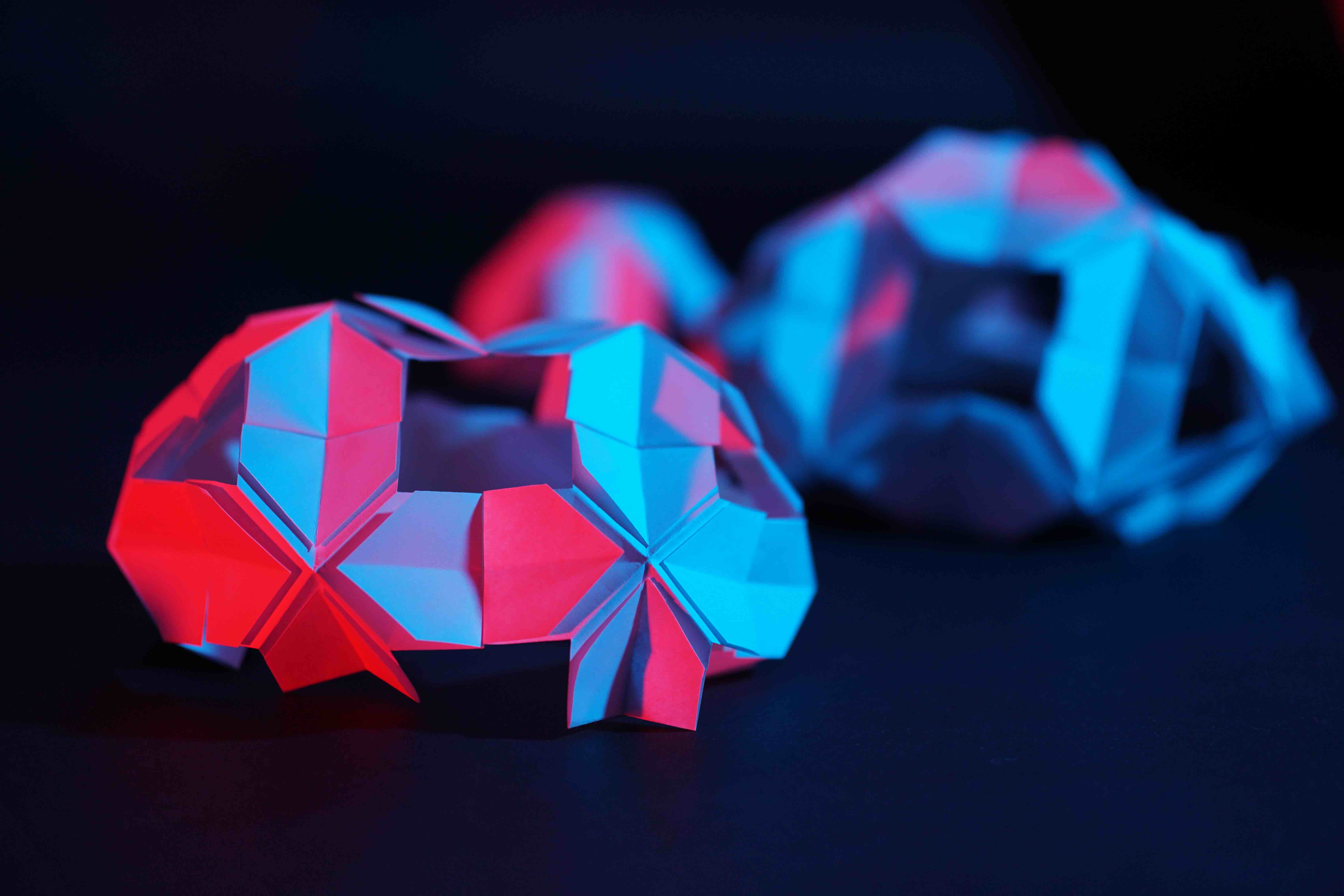 Using an origami-based paper structure, spray-painted surfaces, and controlled lighting, I explored how shadows, reflections, and layered colour could transform the same form into different visual outcomes. The project focuses on how a simple handmade object can shift in mood, depth, and atmosphere through light and colour.